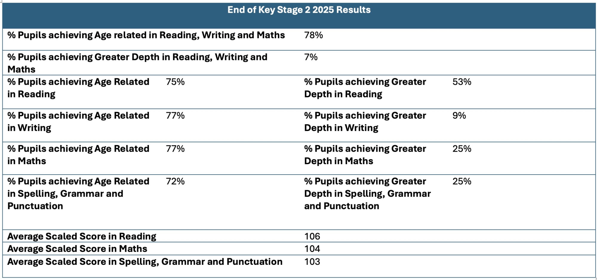 Home Key Information » Academic Results Academic Results Academic Results End of Key Stage 2 2025 Results End of Key Stage 2 2024 Results End of Key Stage 2 2023 Results End of Key Stage 2 2022 Results DfE Performance Tables